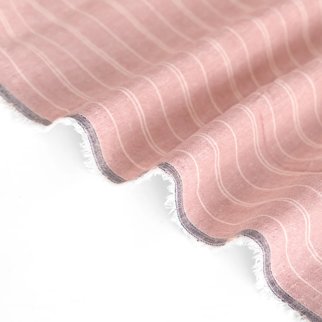 Striped Hemp & Organic Cotton Chambray - Petal/Ivory